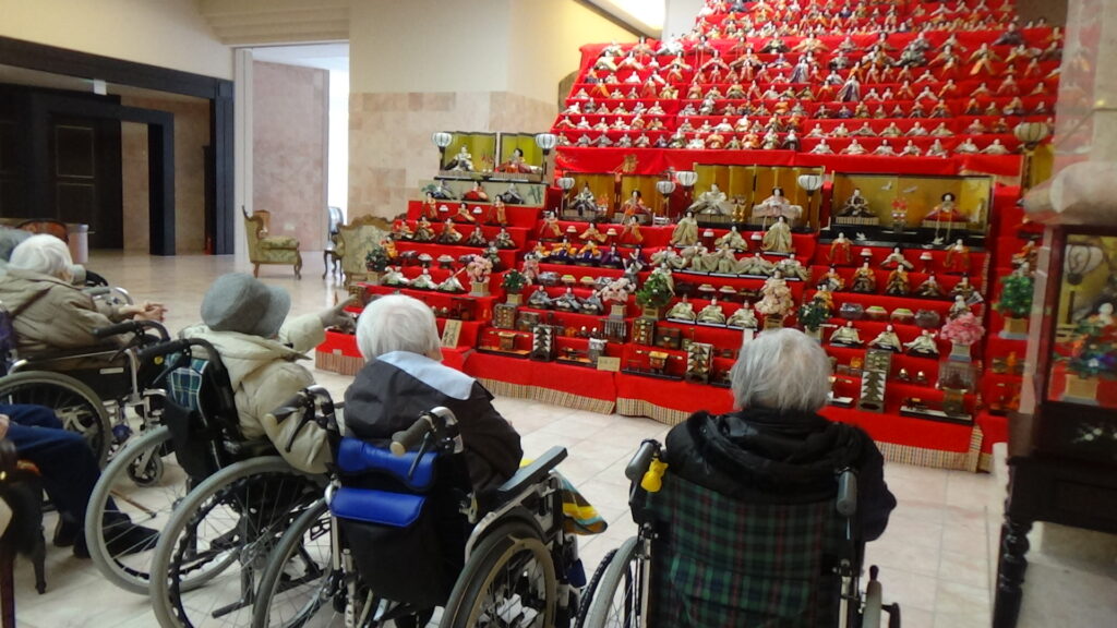 お正月も節分も穏やかに過ごしました。そして、気持ちも気候も暖かく感じる「桃の節句」を迎えました。職員が季節毎に装飾し、利用者様と「お雛様だねー」と話しています。